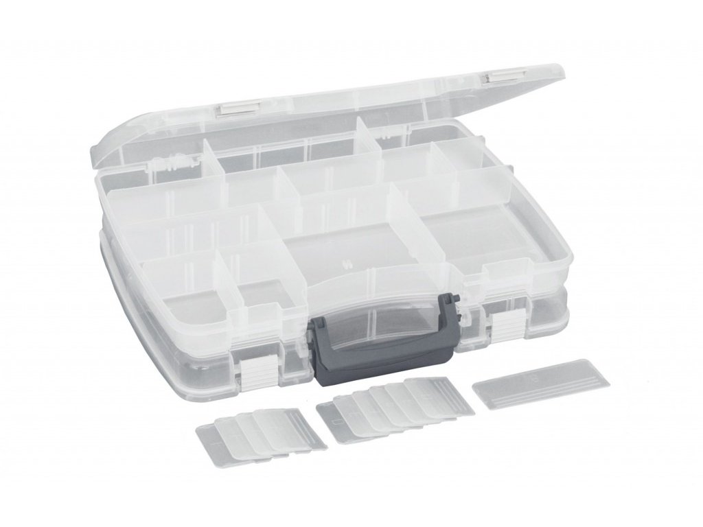 Nabídka multifunkčních boxů pro přechovávání rybářských potřeb - dvoustranné verze, střední velikost. Vyrobeno z vysoce jakostního materiálu, velmi estetické a praktické.