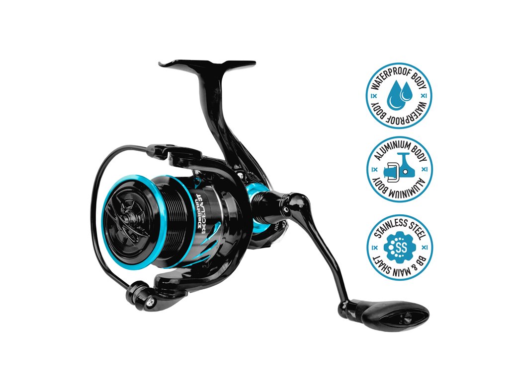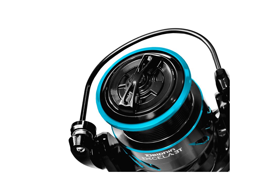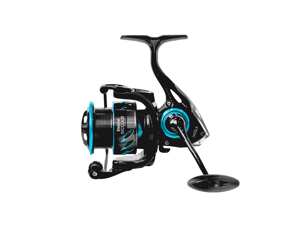 Nepřekonatelný model mezi kompaktními navijáky! Delphin IXCELA má vysoce odolné hliníkové vodotěsné tělo, nerezovou osu a také ložiska! Navíc klička s vnitřním závitem bez jakékoliv vůle! Delphin IXCELA je velmi příjemný, spolehlivý naviják s přední brzdou a kompaktními rozměry. Jeho základ je tvořen zajímavě tvarovaným tělem z velmi pevného a odolného materiálu černé barvy. V kombinaci se stříbrnými a modrými prvky představuje IXCELA designově velmi působivý kousek.Kuličková ložiska v počtu 6+1 zajišťují velmi lehký a tichý chod, což je klíčový parametr každého kvalitního navijáku. Spolehlivý mechanismus s ideálním převodovým poměrem 5.1:1 umožňuje důkladné ukládání vlasce na kovovou cívku. Právě cívka zaujme už při prvním kontaktu výřezy připomínajícími drápky. Klika navijáku IXCELA se k tělu upevňuje našroubováním do vnitřní matice, čímž je minimalizována její vůle a upevnění je tak velmi spolehlivé. Samotné madlo kliky má pogumovaný povrch a na dotek je velmi příjemné a pohodlné. Kromě toho efektně dotváří naviják po estetické stránce.