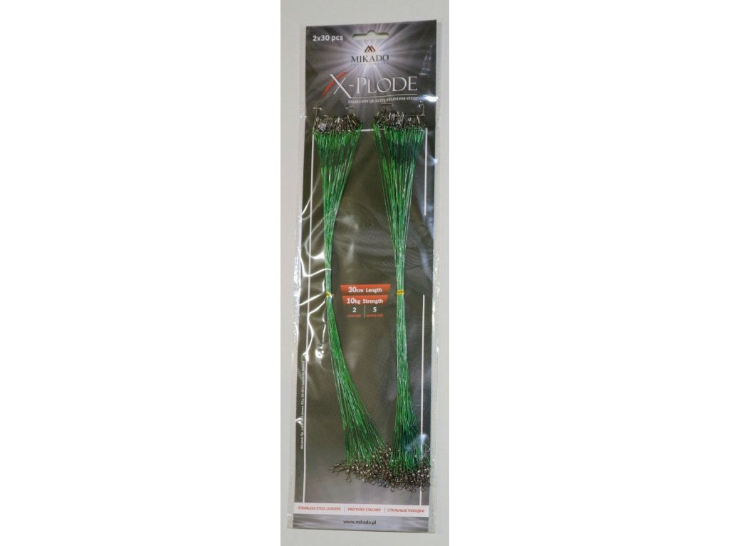 Ocelová Lanka Mikado X-Plode. Baleno podle typu na prodejních tablech, kartách. Balení je určeno pro obchody a obsahuje od 30 do 75ks lanek podle typu karty. V délkách od 15cm do 35cm.