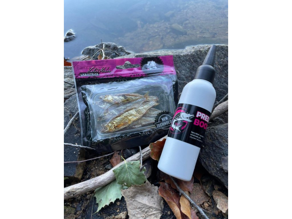 Sušená a následně naložená rybička v úspěšném dipu Predátor, která je velmi zajímavou a aromatickou nástrahou pro lov candátů. Rybičky jsou neutrálně vyvážené až plovoucí, takže je dravci velmi dobře nasávají. Nastražuje se propíchnutím části těla kolem páteře, za ocásek, či prošíváním. Rybička je konzistentní a můžete s ní nahazovat i do větších dálek. Obsah balení 5ks. Doba účinku dipu je až 24 hodin! Velikost 6 – 10 cm. Veterinárně schváleno.