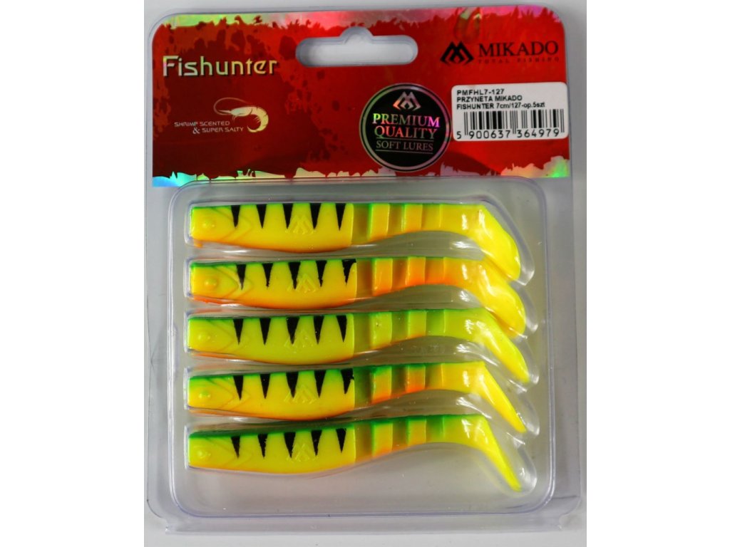 Fishunter – Vražedná preciznost. Do této chvíle se zdálo, že měkké, vláčecí nástrahy jsou uzavřenou kapitolou sportovního rybolovu a velmi málo se dá zlepšit. Přesto je to možné a výsledky jsou kolosální. Fishunter je v pravdě revoluční gumová nástraha. První a nejdůležitější inovací je použití úplně nového materiálu vyznačujícího se až 6x vyšší pružností v porovnání s tradičním silikonovým materiálem. Nový materiál netlumí vibrace, udržuje odezvu ve vysokých frekvencích. To způsobuje, že každý pohyb nástrahy generuje celou řadu dodatečných zvuků a vibrací, které doslova „oživují“ celý povrch návnady.