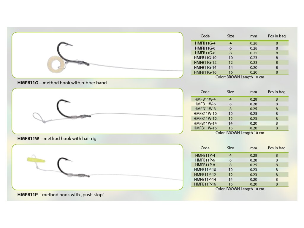 Kompletní návazce pro Method feeder. Verze - s vlascem, háčky s protihrotem, v různých verzíchuchycení nástrahy . Kompletované na vysoce jakostním vlasci, se super ostrými háčky.