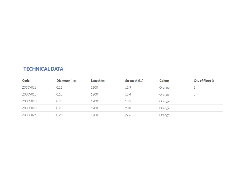 8-žilová pletená šňůra určená k lovu kaprů na střední a dlouhé vzdálenosti. Měkká, pokrytá potahem P.T.F.E. v technologii Thermo-Fuse, mimořádně pevná v uzlu a odolná na otěr. Dodatečně je osazena značkami každých 300 m. Barva : Orange (oranžová)