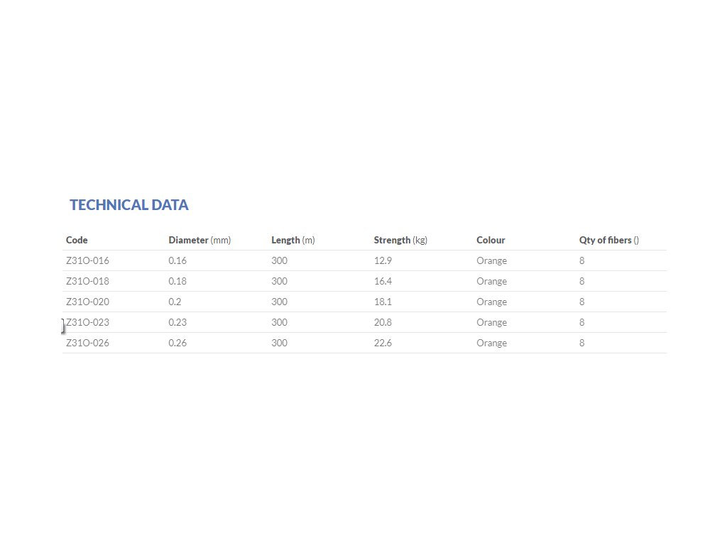 8-žilová pletená šňůra určená k lovu kaprů na střední a dlouhé vzdálenosti. Měkká, pokrytá potahem P.T.F.E. v technologii ThermoFuse, mimořádně pevná v uzlu a odolná na otěr. Dodatečně je osazena znackami co 300m. Barva : Orange (oranžová)