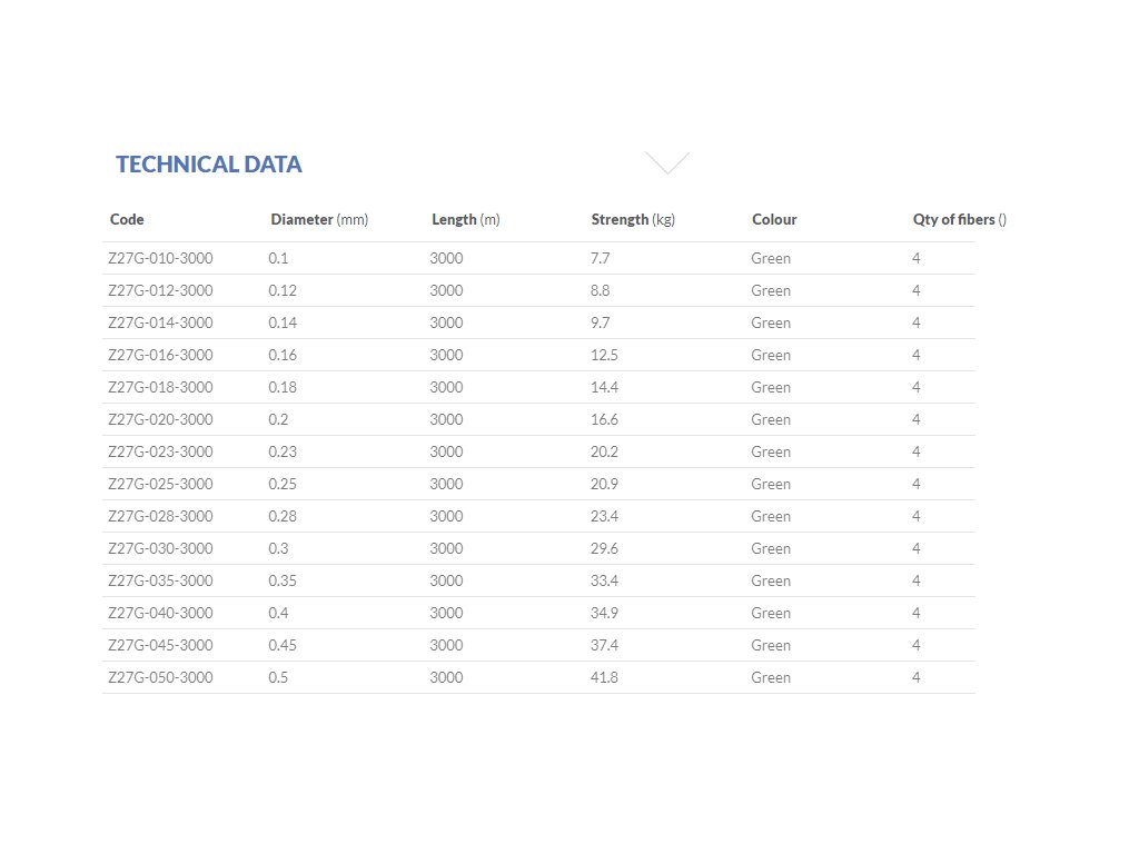 Moderní rybářská pletená šňůra vyrobená z jakostních mikrovláken spletená do kruhového průřezu. Mimořádně měkká, skvěle se ukládá na cívku navijáku a umožňuje přesné a daleké hody. Nešumí v očkách udice. Vhodná především k lovu candátů, tresek, štik a sumců. Nabízena ve třech barvách : Green (Zelená) , Black (černá), Yellow (žlutá). Konkrétní typ je v nadpisu.