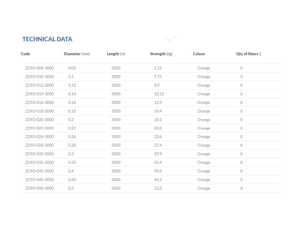 Moderní rybářská pletená šňůra vyrobená z 8 jakostních mikrovláken spletená do těsného kruhového průřezu, potažená nano-silikonem, zvyšujícím kvalitu práce. Vysoká odolnost proti otěru, extrémně daleké hody. Mimořádně měkká, skvěle se ukládá na cívku navijáku. Nulová roztažnost zaručuje citlivost a okamžitý zásek. Zvýšená odolnost v uzlu. Nešumí v očkách udice. Vhodná především k lovu candátů, tresek, štik a sumců. Konkrétní typ je v nadpisu.