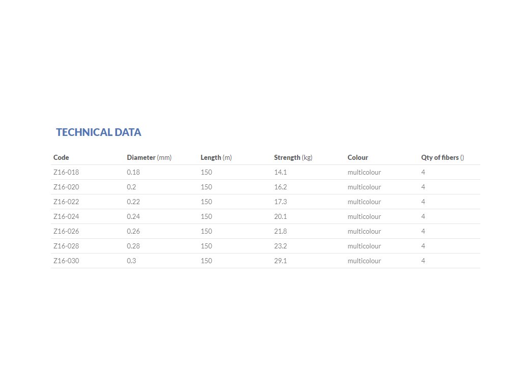 Vícebarevná pletená šňůra s kruhovým průřezem vyrobená z hustě pletených mikrovláken s velkou odolností na otěr. Díky měnící se barvě se lze zorientovat o množství již odvinuté pletenky, což je velmi důležité hlavně při mořském rybolovu, kdy lze odhadnout lovnou hloubku. Barva se mění každých 10m a každý 1 metr je značen bílým pruhem.