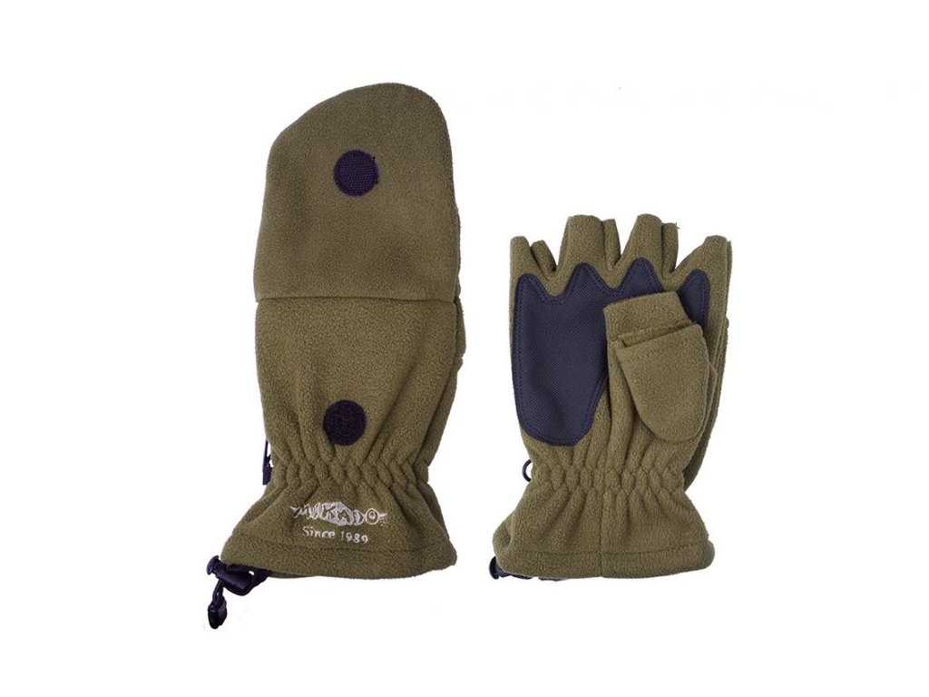 Fleecové rybářské rukavice s odklápěcími bříšky prstů. Zpracované na velmi vysoké úrovni. Dlaň je obšitá odolným pevným materiálem který chrání rukavice od opotřebení z každodenního použití. Další nespornou výhodou je systém těchto rukavic 2v1. právě Vy se můžete rozhodnout zda chcete mít ruce v tzv. palčáky, nebo potřebujete prsty volné na manipulaci. Tyto rukavice Vám to umožní díky vyklápěcím vrchní části, která je následně fixována suchým zipem, aby nepřekážela. Systém stahování s gumičkou dovoluje utáhnout rukavice kolem zápěstí.