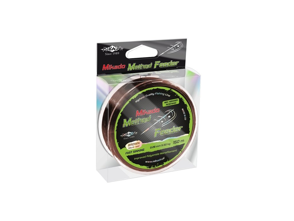 Mikado Method Feeder je kvalitní, rychlý, extrémně měkký vlasec a je určen pro rybolov s feederovými krmítky. Matně hnědá barva dokonale maskuje vlasec na dně. Speciální, hedvábně hladký vnější plášť je zárukou pro dlouhé a přesné hody. Velmi trvanlivý a vysoce odolný proti otěru. Je charakterizován naprostým nedostatkem paměti, takže vás nezklame ani v těch nejtěžších podmínkách.
