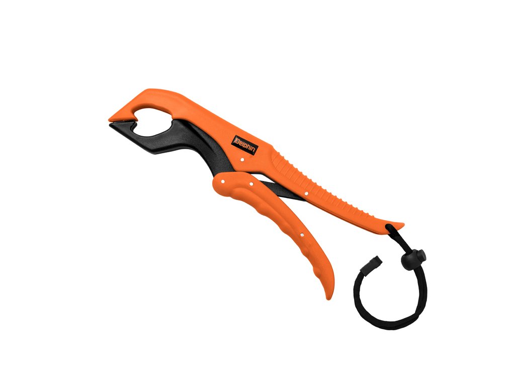 Vylovovací kleště Delphin ATAK! Fish Grippers jsou určeny pro vylovování dravých ryb ze břehu nebo z člunu. Jejich délka je 25cm, a proto s nimi dokážete vylovit i ty největší štiky nebo candáty. Vyhotovené jsou z plastu oranžové barvy, který je dobře viditelný za každých podmínek. Spodní pohyblivá čelist je černé barvy. S našimi vylovovacími kleštěmi se už nemusíte bát poranění a můžete s nimi rybu bezpečně vylovit a zbavit ji háčků. Na jednom rameni rukojeti je otvor s provlečenou šňůrkou a zatahovacím mechanismem pro upevnění na ruku.Doplňkové parametry